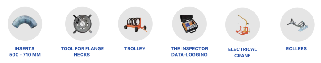 This is a self-aligning machine, suitable for welding ducts for the transport of water, gas and other fluids under pressure, up to 500mm. The DELTA 500 was designed in accordance to the International correspondent standards (UNI 10565, ISO 12176-1).